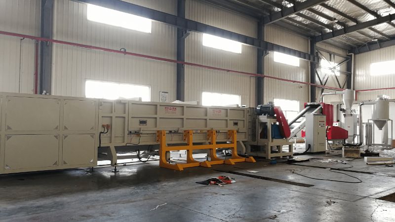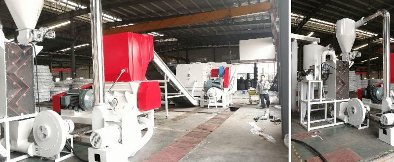 The solution provided by our company is: first use a horizontal double-shaft shredder to shred, then feed the crusher by a conveyor belt, and after crushing, the suction fan enters the powder separation device, and finally the fan is sent to the silo for collection.