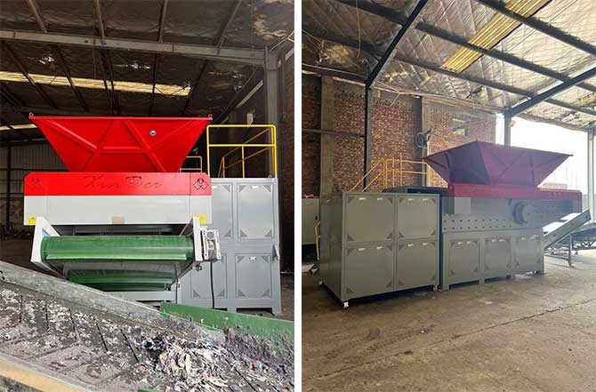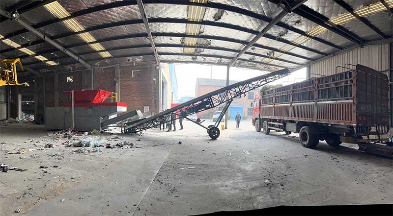 The solution provided by our company is: use XB-L64160 single-axis shredder, feed the material through the grabber, and discharge the material directly into the customer's truck, and then send it to the cement plant for incineration
